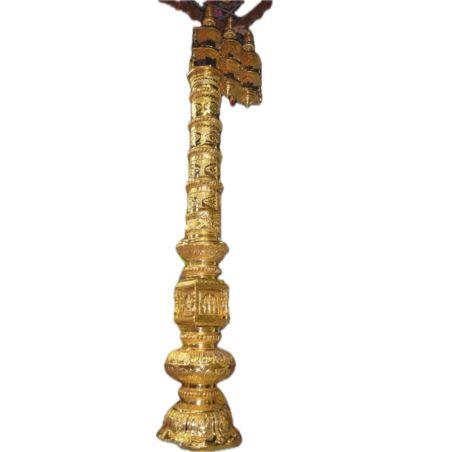 Dhvajastambhas are typically made of wood, brass, bronze, copper, or gold-plated metals, ensuring durability and spiritual sanctity. The top of the flagstaff features a Kalasam (sacred finial), enhancing its divine presence.