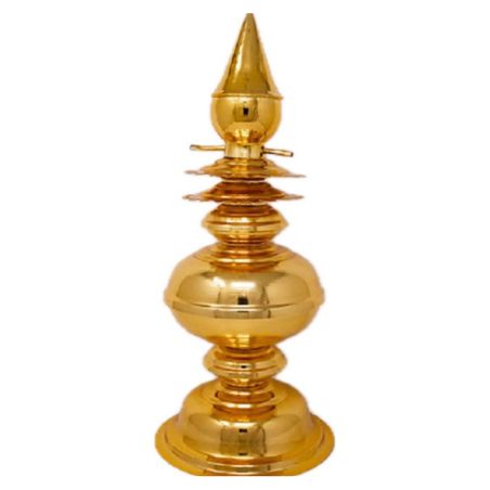 Crafted from materials such as panchaloha (five-metal alloy), copper, brass, or gold, the Kalasam is an integral part of Hindu temple architecture, representing the sacred connection between heaven and earth.